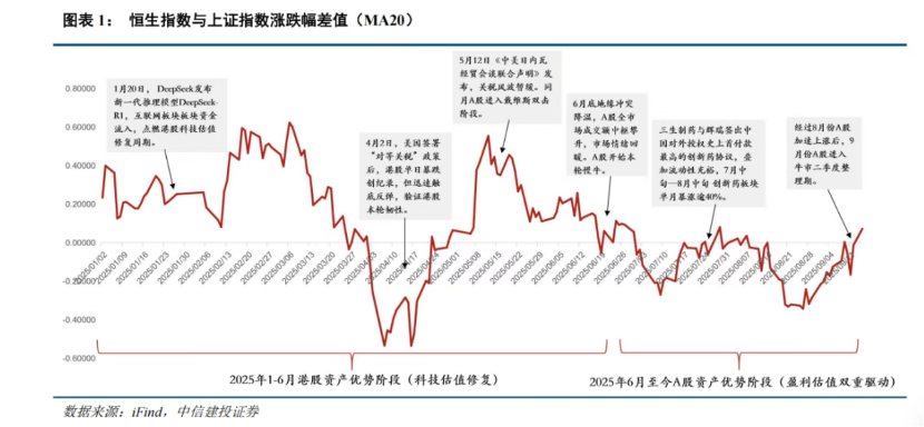 不过进入7月,情况则明显逆转,相比异军突起创“十年新高”的A股市场,港股“显得”低迷得多。7月至8月,恒生指数上涨6%,跑输同期的A股。同期,上证指数涨12%,创业板指更是大涨37%。直至9月,港股较A股优势再次凸显。