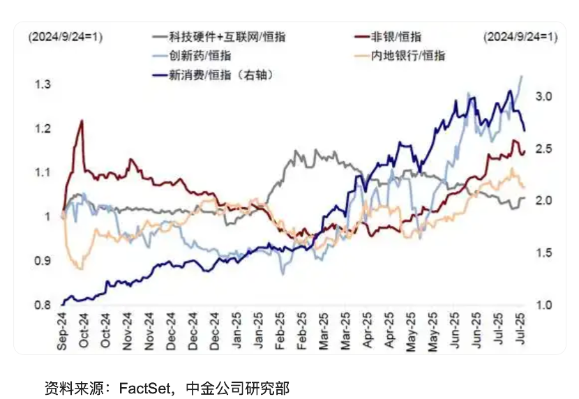 其一,虽然市场外部扰动不断,但港股的结构性行情活跃,板块之间此消彼长、不断轮动。年初以来,港股市场已经历AI、新消费、创新药等几条主线。